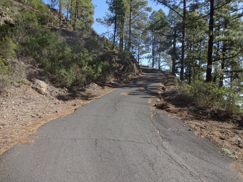Contador 8,4 km – Lomo de Tamadaya 0,5 km“ unter dem markanten Felsen scharf links abbiegen. Auf einem Stein ist die weiß-gelbe Markierung angebracht, die aber bereits fast zugewachsen ist. Das ist aber auch schon die einzige Stelle, an der, im Hinblick auf die Wegeführung, Aufmerksamkeit geboten ist.