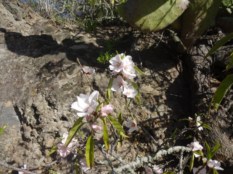 Überrascht sind wir: Schon bei der Anfahrt: ganze Felder des Kanaren-Lavendels, Hecken von blühendem Rosmarien. Es blühen schon Mandelbäume, die ersten Montpellier-Zistrosen, Aeonien, große Flächen bedeckt das hiesige, kleine Ringelblümchen, Polster von Margeriten und Hornklee. Und das im Dezember!