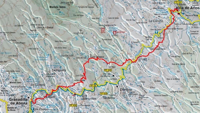 Wir fahren von der Autobahn TF 1 bei der Ausfahrt „Chimiche – Rió“ ab und fahren hoch bis zum Ortseingang von Chimiche. Da gibt es auf der linken Seite der Calle El LLano einen Parkstreifen.
