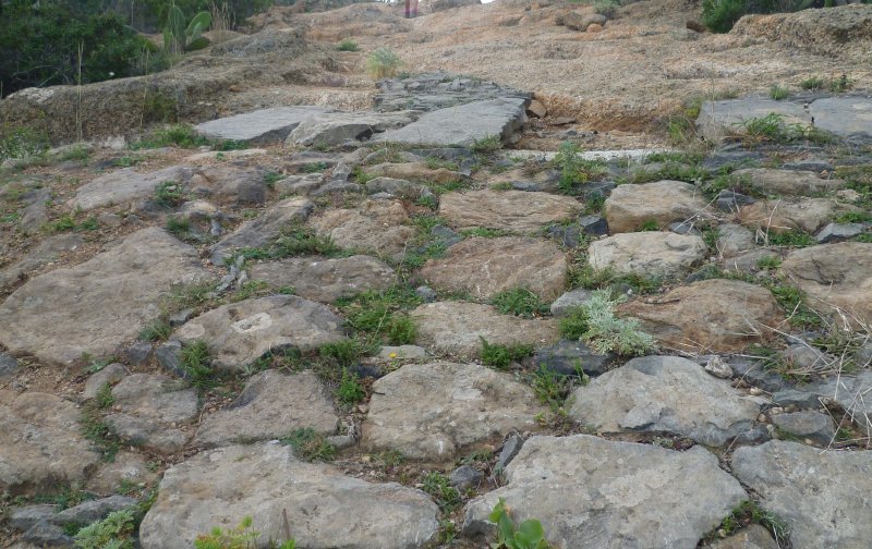 Wir stellen sehr schnell fest, dass wir auf großen, mit Steinen gepflasterten Strecken gehen, ganz offensichtlich noch der ursprüngliche Camino Real, der mit Aeonien und Wermut gesäumt ist.