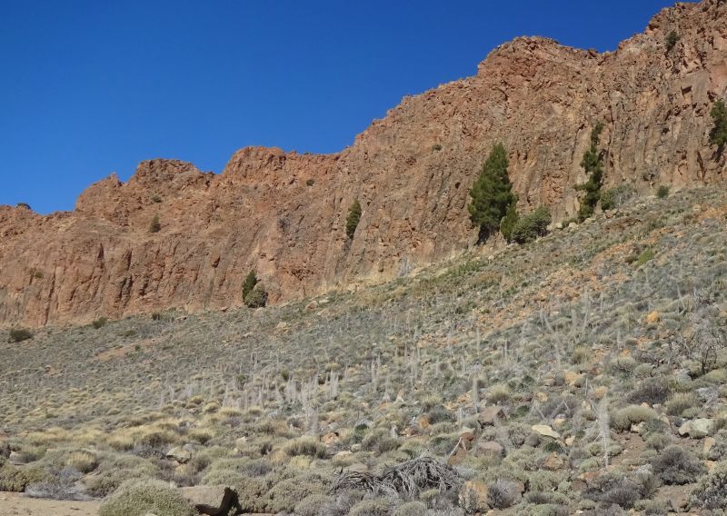 Trotzdem erfreut uns der Blick auf den Teide und hier auf einzelne Skelette der Teide Taginaste.
